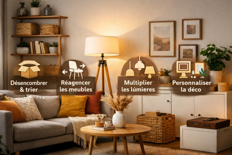 L’essentiel à retenir : Pour améliorer votre intérieur sans gros travaux, commencez par libérer l’espace, revoir la circulation et soigner